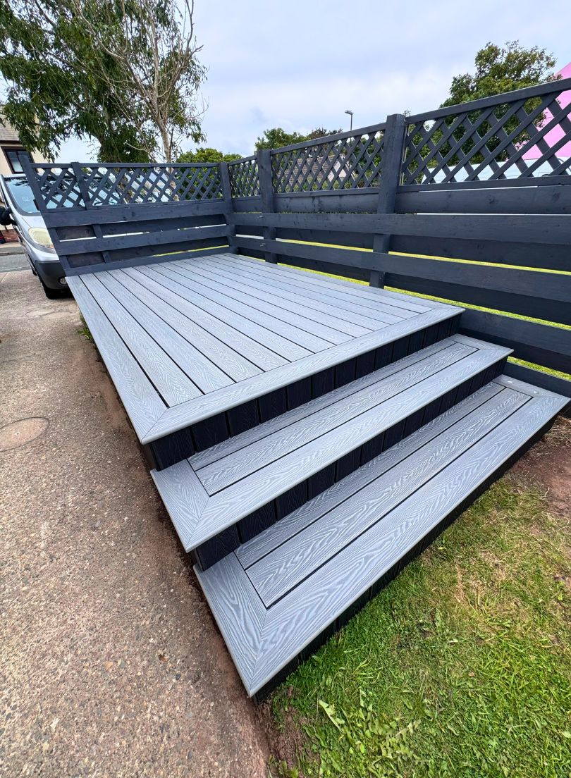 We work exclusively with premium composite materials supplied by Artificial Spaces. Unlike traditional timber, composite products are specifically designed to handle the Isle of Man’s damp and coastal conditions.